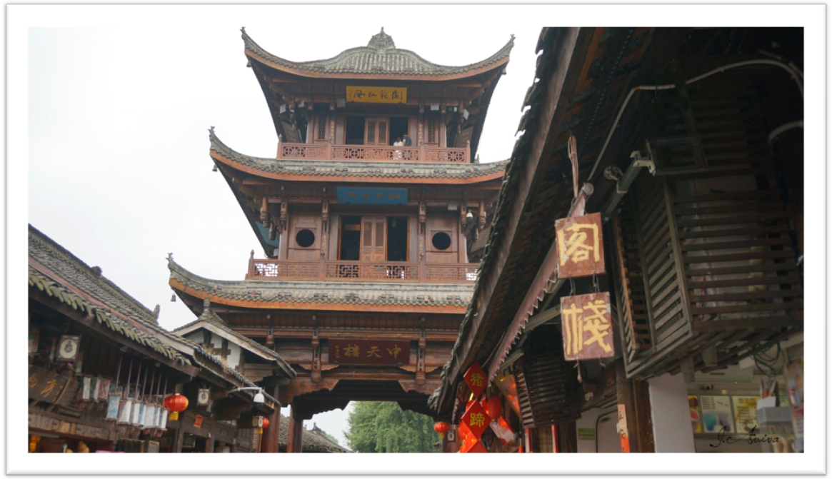 中天楼是一座始建于唐朝的三层明清建筑风格的木质高楼,楼高25米,在一大片古城区中拔地而起,其实恢弘,建造精美。中天楼是阆中古城的风水坐标和穴位所在,古城的街道就是以它为轴心的,呈“天心十道”向四面八方次第展开,因此也将之称为“阆中风水第一楼”。说到风水,就不得不提唐朝第一风水大师袁天罡了,第一次听说这个名字,还是看了国产动漫画江湖,那个戴笠遮面,迎风而立的不良帅。传说中袁天罡与李淳风便长眠于阆中天宫院。