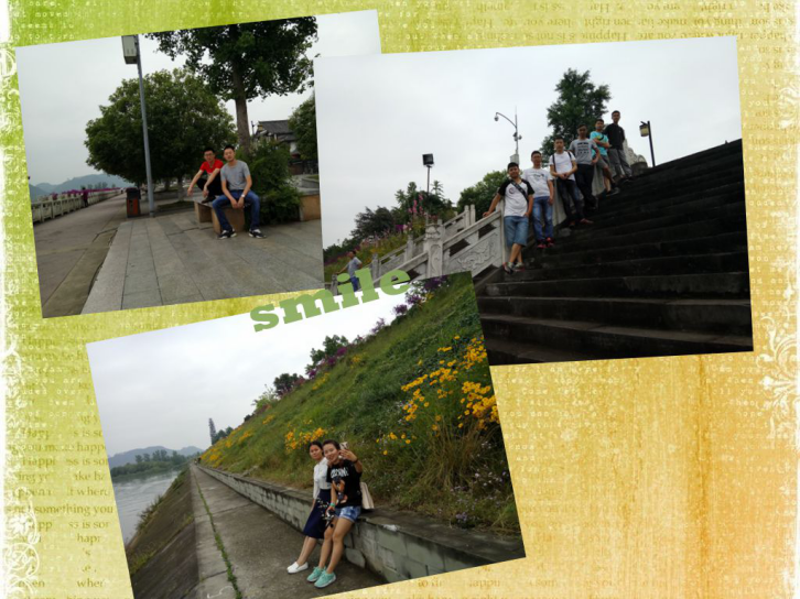 出南门,江对岸锦屏山遥??杉?,徒步嘉陵江江滨,空气格外清爽,这时节并不是旅游旺季,江边游客不会太多,加上天气正好,心情顿觉畅然。献上市场部6人组靓照。