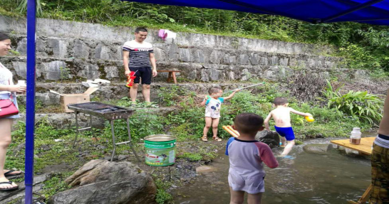 常言道,有孩童之地常多欢,此次出游,多带孩童。梦霞之子,纪波之子,毅之子,云云。清流之水,孩童好嬉戏之。孩童欢乐乎,长者亦甚之悦。受其氛围之染,众同事亦若归于童年,忘情戏水,你攻我防,有来有回。衣沾湿矣,晾后复被湿,满山笑语,别是雅致风味。此所谓忘情于山水之间,素工作中之劳苦,尽随清泉流去兮,实乃快事矣!