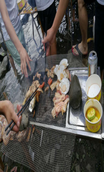 及至申时,盖因有一吃货领导,携吾众于清泉中自炙,虽曰不为“流觞曲水”,但觉亦几矣。虽无鱼翅鲍鱼之盛,一蚝一贝,亦足以令人大块朵颖;且啖炙,且饮酒,且看众孩童戏水多欢乐,爽哉快哉!至酉时,天色渐晚,众人欲驱车归家,实属意犹未尽,又择地把酒言欢,且以歌伴酒,且以酒助兴,欢声笑语,相逢何需多言,共饮一壶老酒,哪管那明日春秋,其乐融融。直至次日凌晨,众人皆尽兴而归。此所谓乘兴而来,尽兴而归??煸湛煸?!