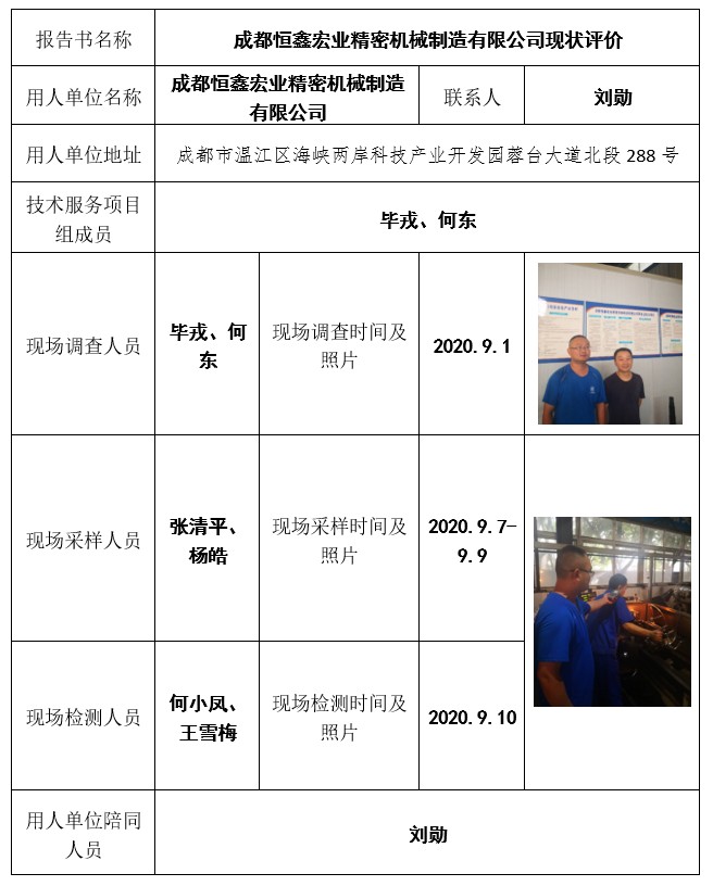 成都恒鑫宏业精密机械制造有限公司现状评价