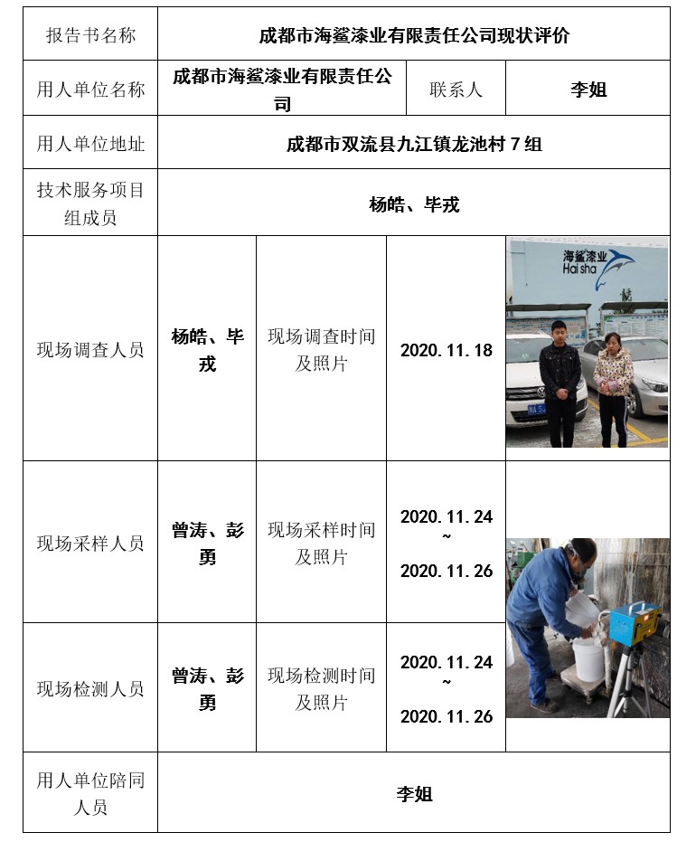 成都市海鲨漆业有限责任公司现状评价