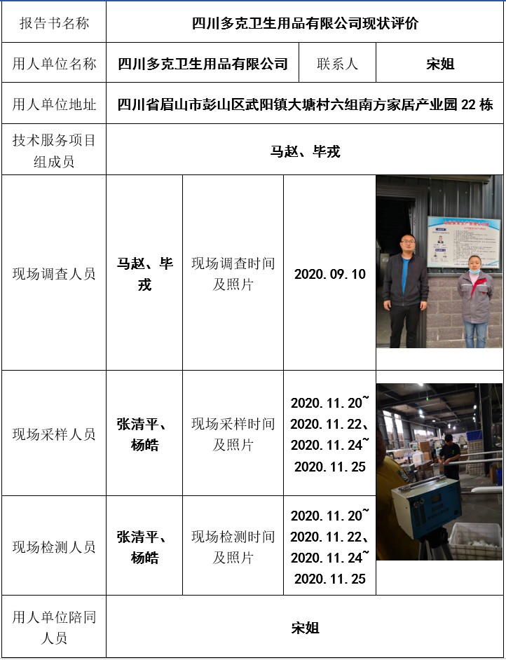 四川多克卫生用品有限公司现状评价