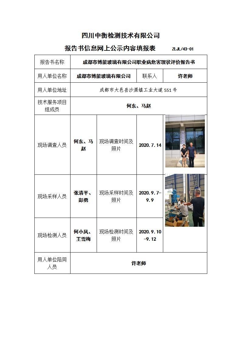 成都市博能玻璃有限公司职业病危害现状评价报告书