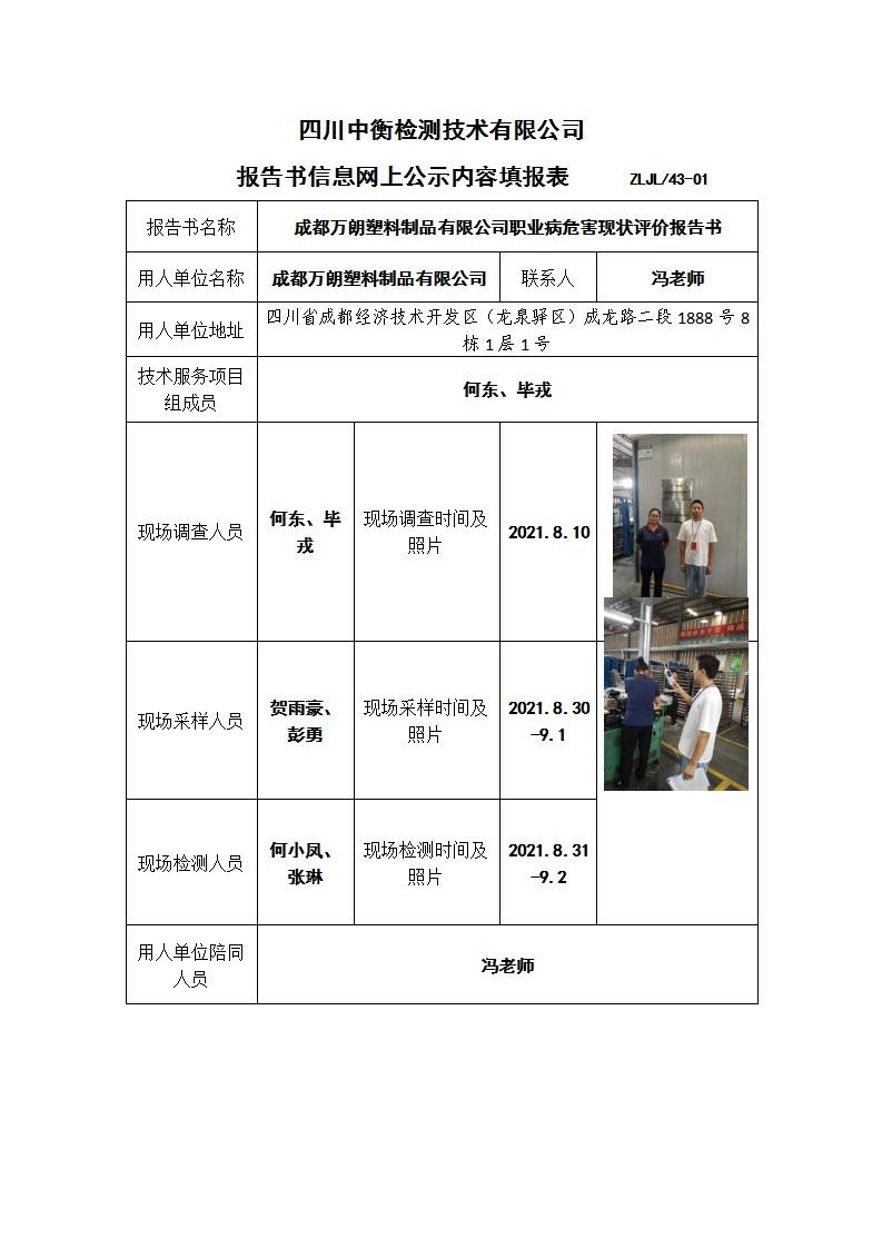 成都万朗塑料制品有限公司职业病危害现状评价报告书