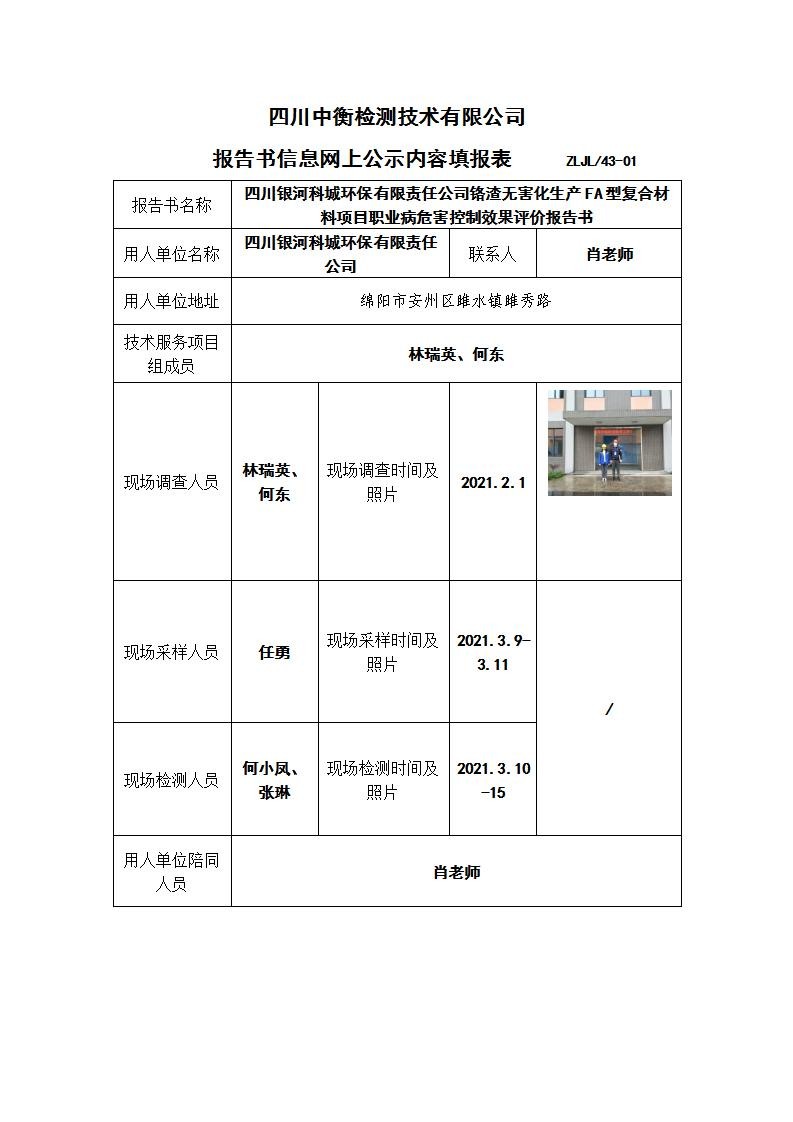 四川银河科城环保有限责任公司铬渣无害化生产FA型复合材料项目职业病危害控制效果评价报告书