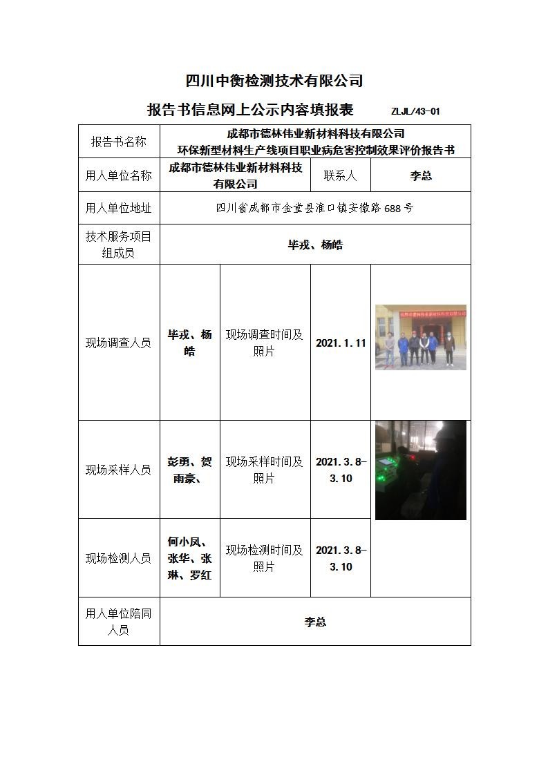 成都市德林伟业新材料科技有限公司 环保新型材料生产线项目职业病危害控制效果评价