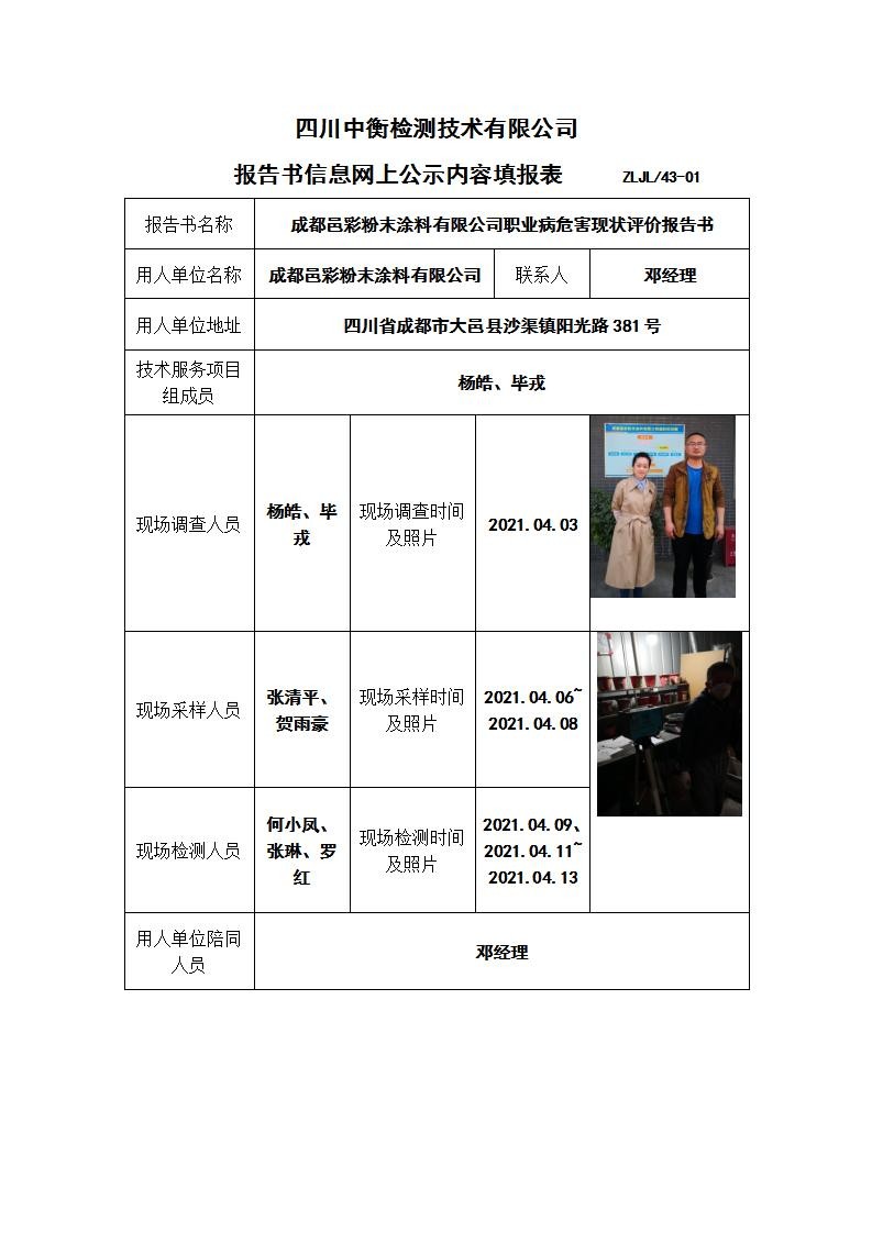 成都邑彩粉末涂料有限公司职业病危害现状评价
