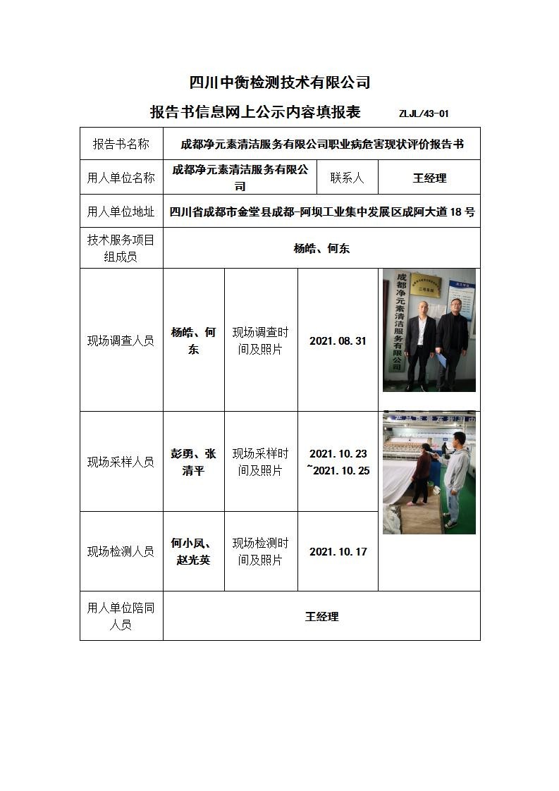 成都净元素清洁服务有限公司职业病危害现状评价