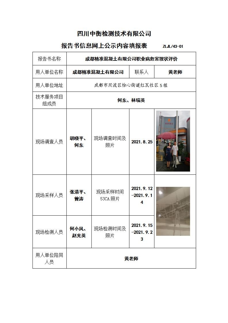 成都精准混凝土有限公司职业病危害现状评价