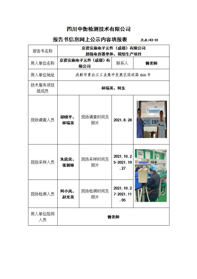 京瓷安施电子元件(成都)有限公司 超级电容器单体、模组生产项目