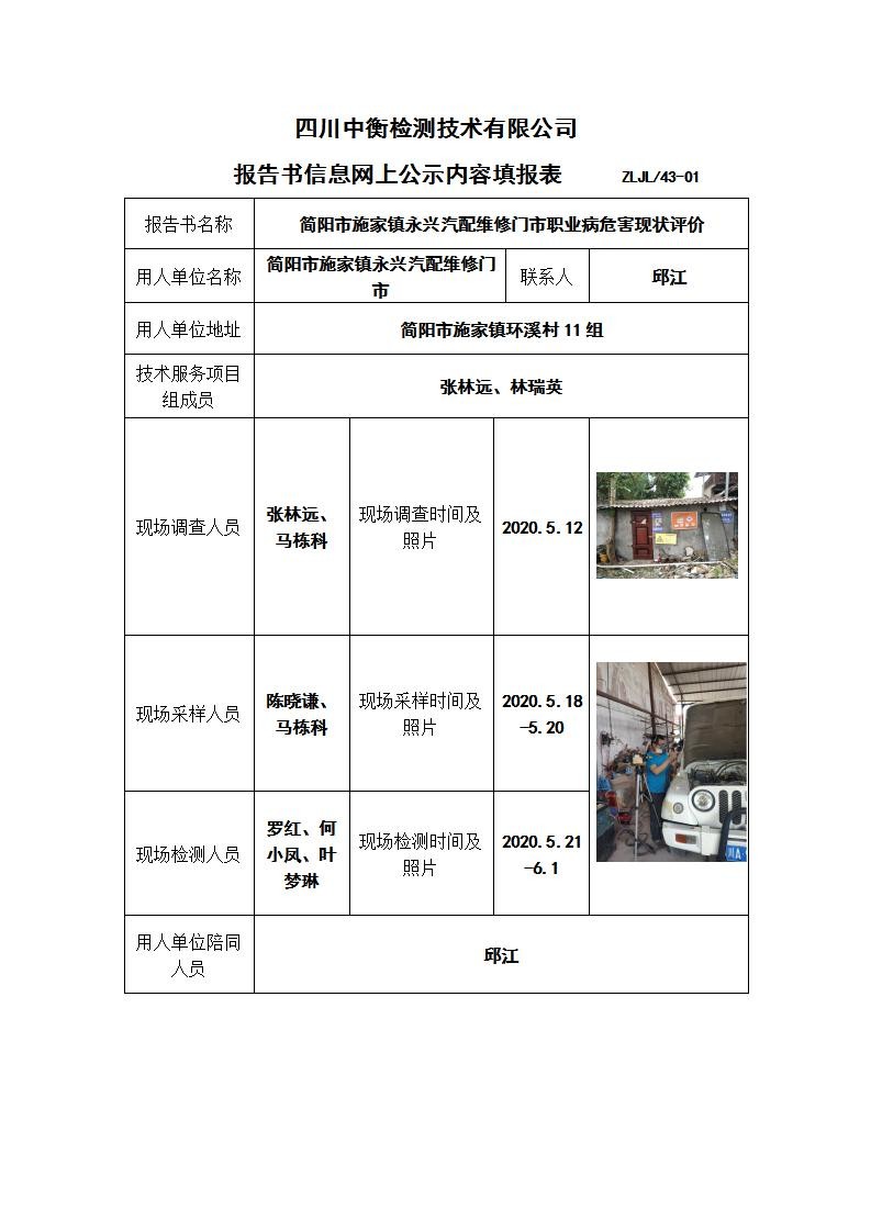 简阳市施家镇永兴汽配维修门市职业病危害现状评价