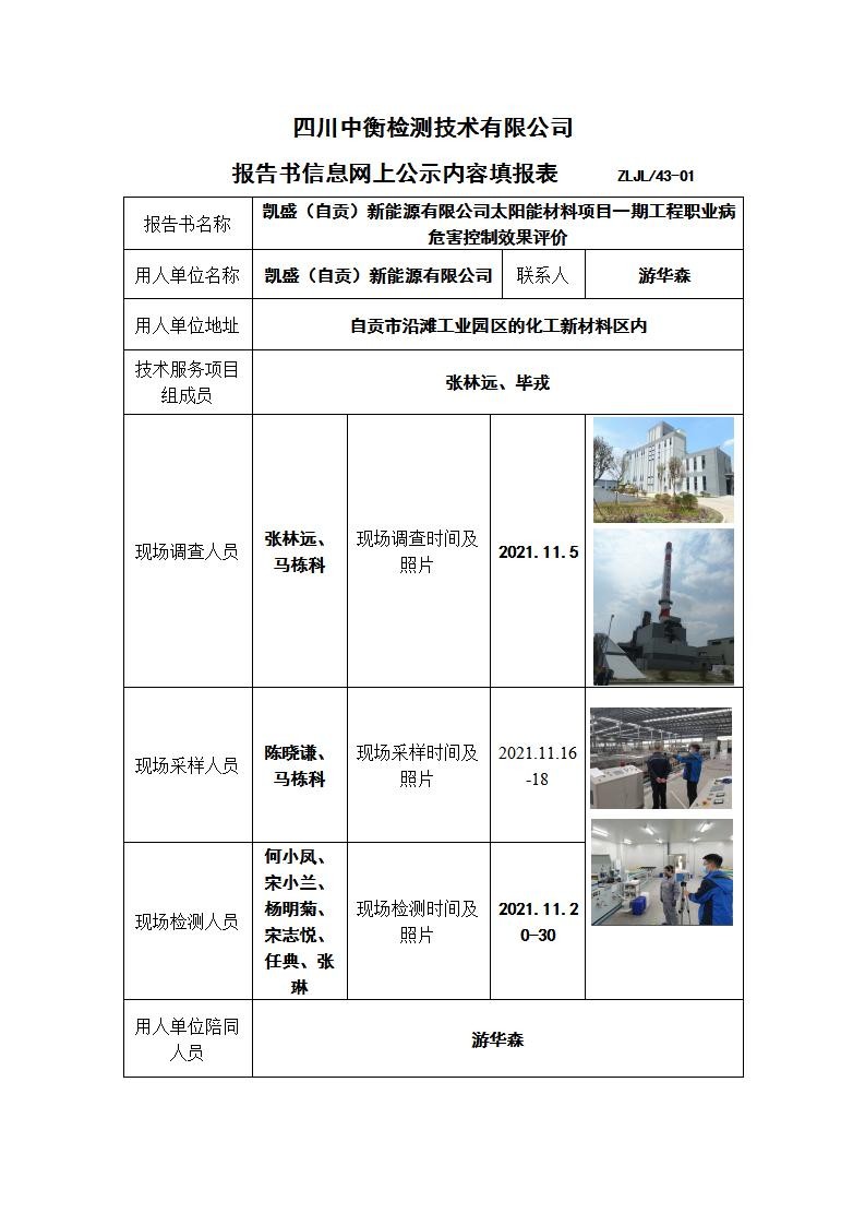 凯盛(自贡)新能源有限公司太阳能材料项目一期工程职业病危害控制效果评价