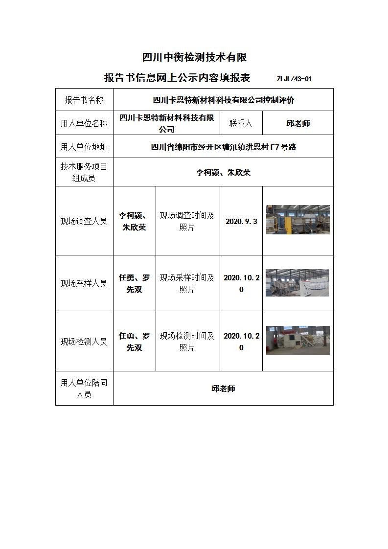 四川卡恩特新材料科技有限公司控制效果评价