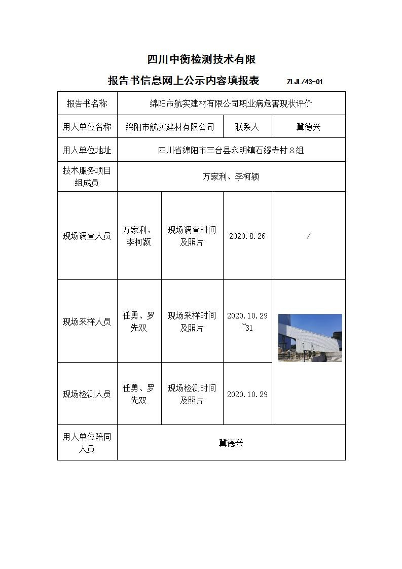 绵阳市航实建材有限公司职业病危害现状评价