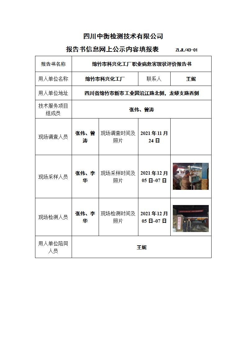绵竹市科兴化工厂职业病危害现状评价报告书