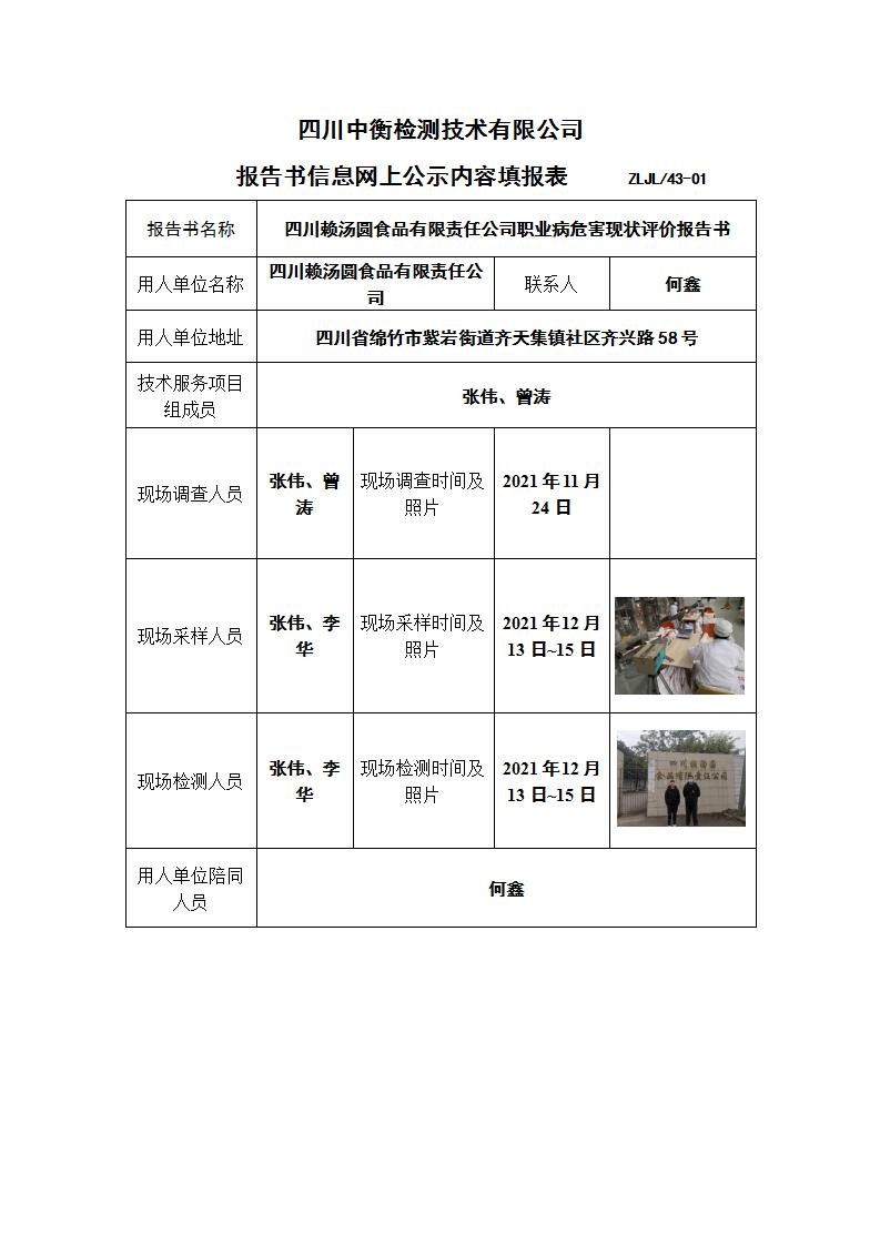 四川赖汤圆食品有限责任公司职业病危害现状评价