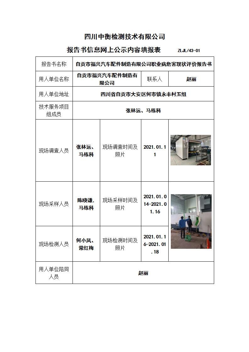 自贡市福兴汽车配件制造有限公司职业病危害现状评价