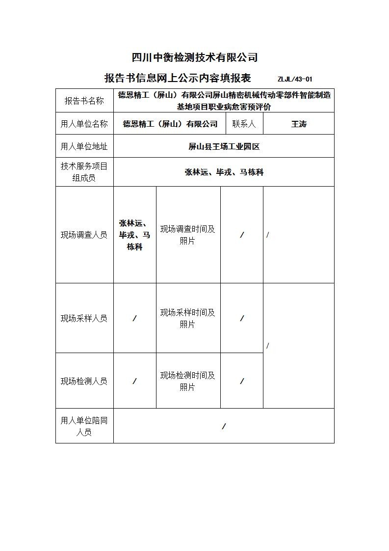 德恩精工(屏山)有限公司屏山精密机械传动零部件智能制造基地项目职业病危害预评价