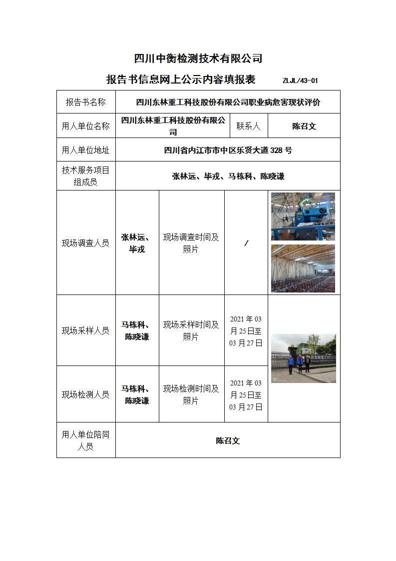 四川东林重工科技股份有限公司职业病危害现状评价