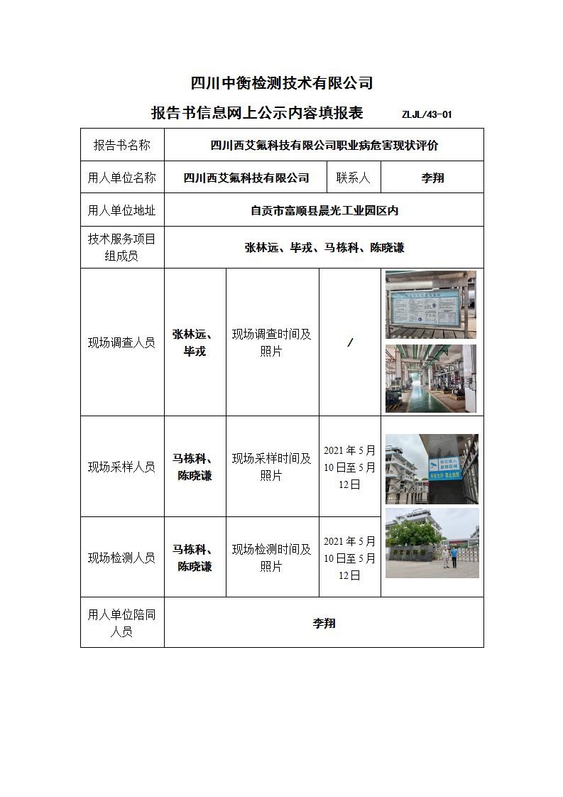 四川西艾氟科技有限公司职业病危害现状评价