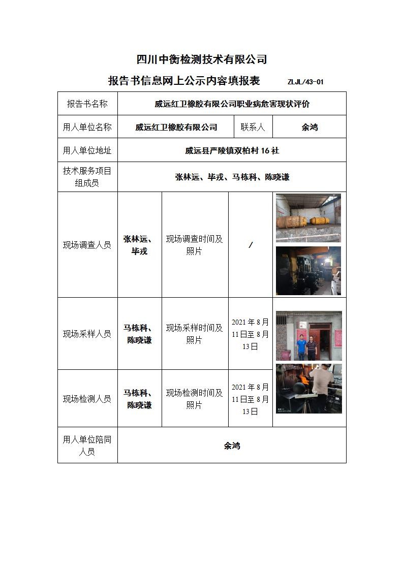 威远红卫橡胶有限公司职业病危害现状评价