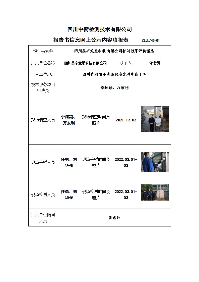 四川昊宇龙星科技有限公司控制效果评价报告