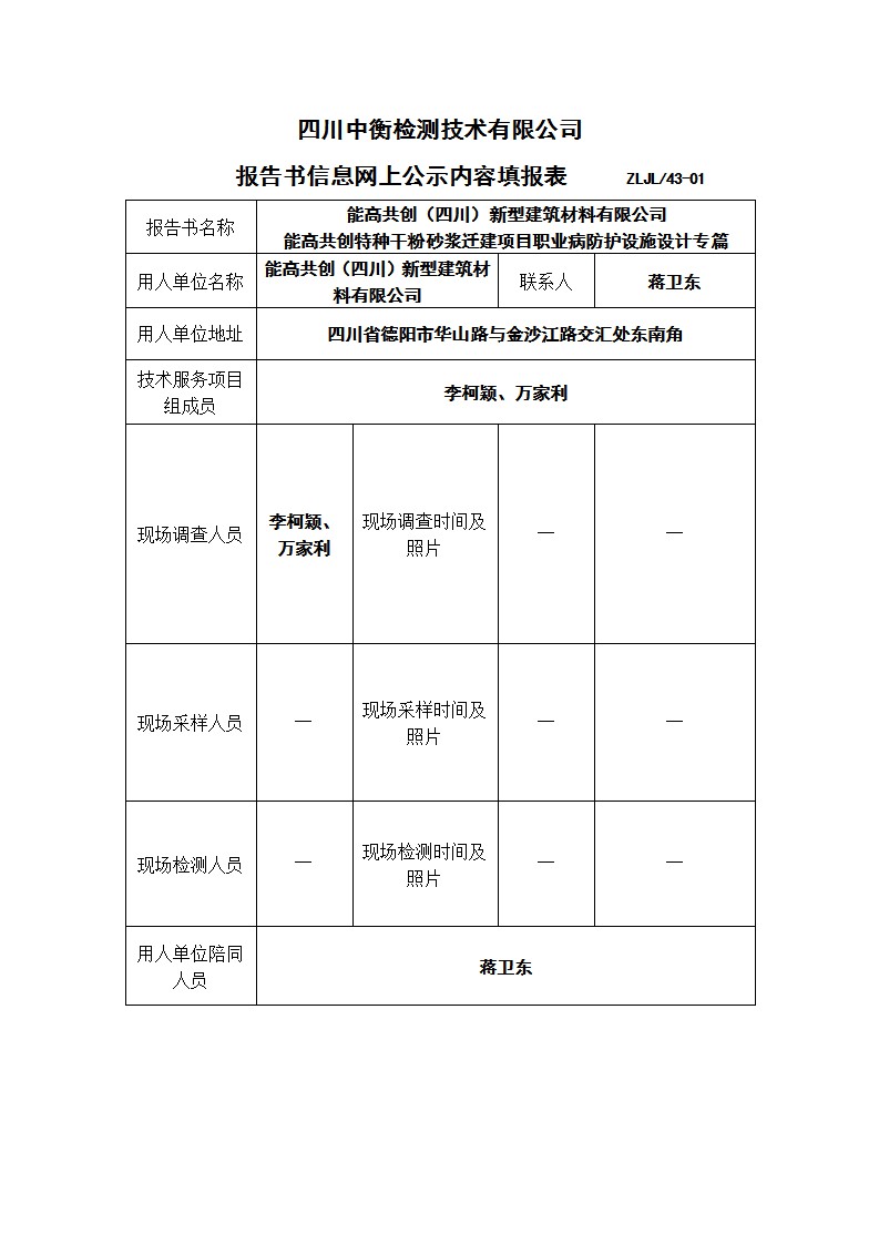 能高共创(四川)新型建筑材料有限公司 能高共创特种干粉砂浆迁建项目职业病防护设施设计专篇
