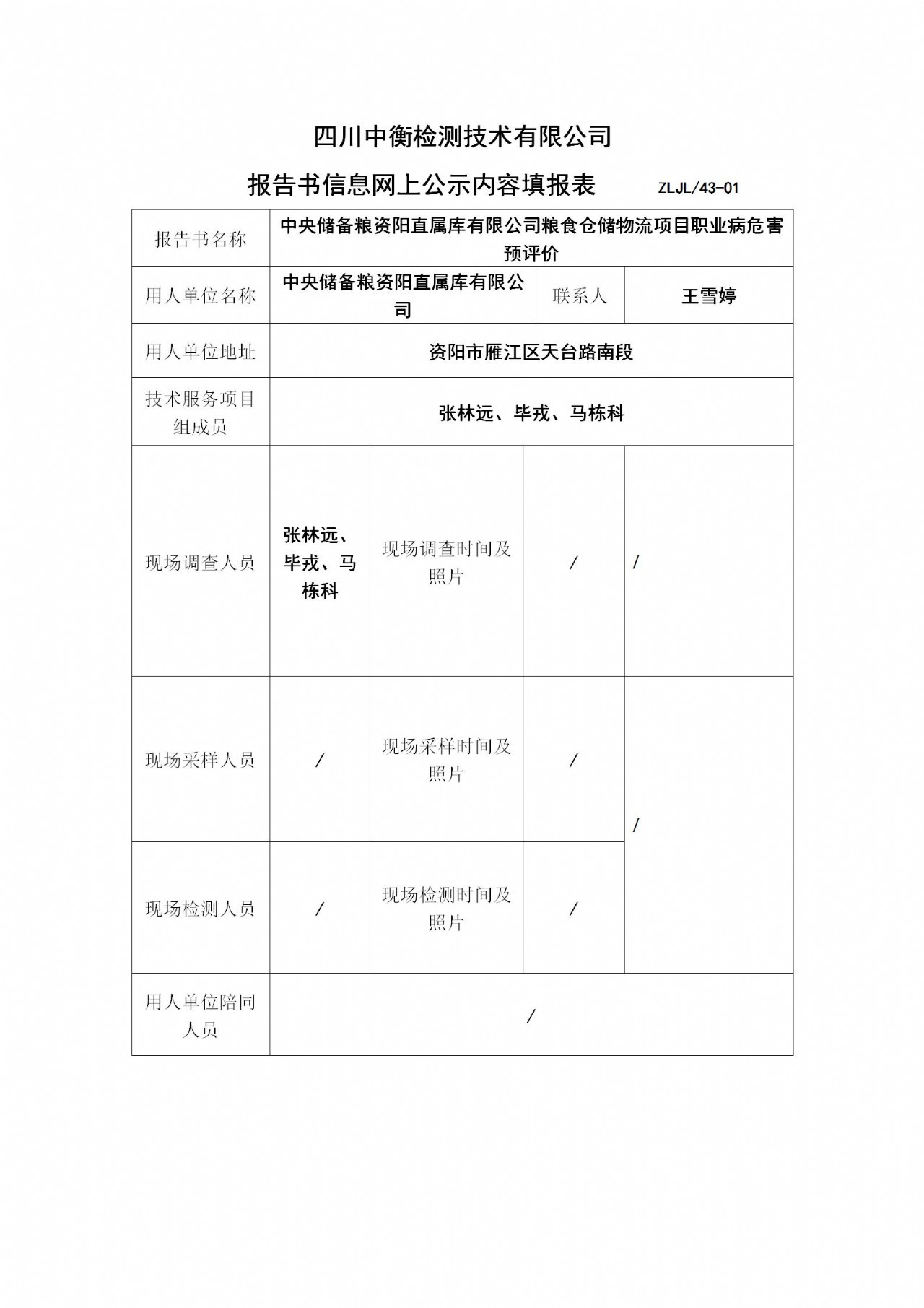 中央储备粮资阳直属库有限公司粮食仓储物流项目职业病危害预评价