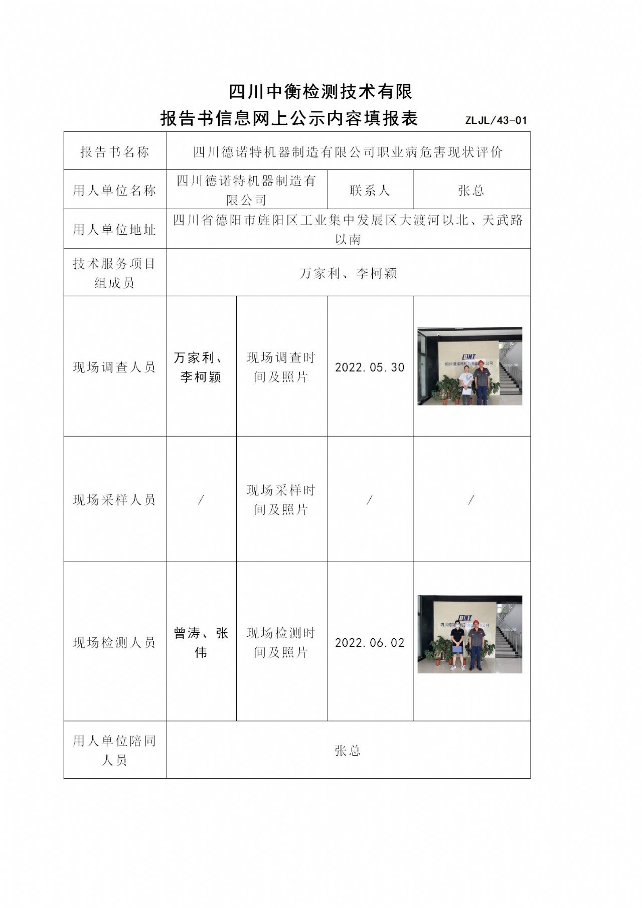 四川德诺特机器制造有限公司职业病危害现状评价