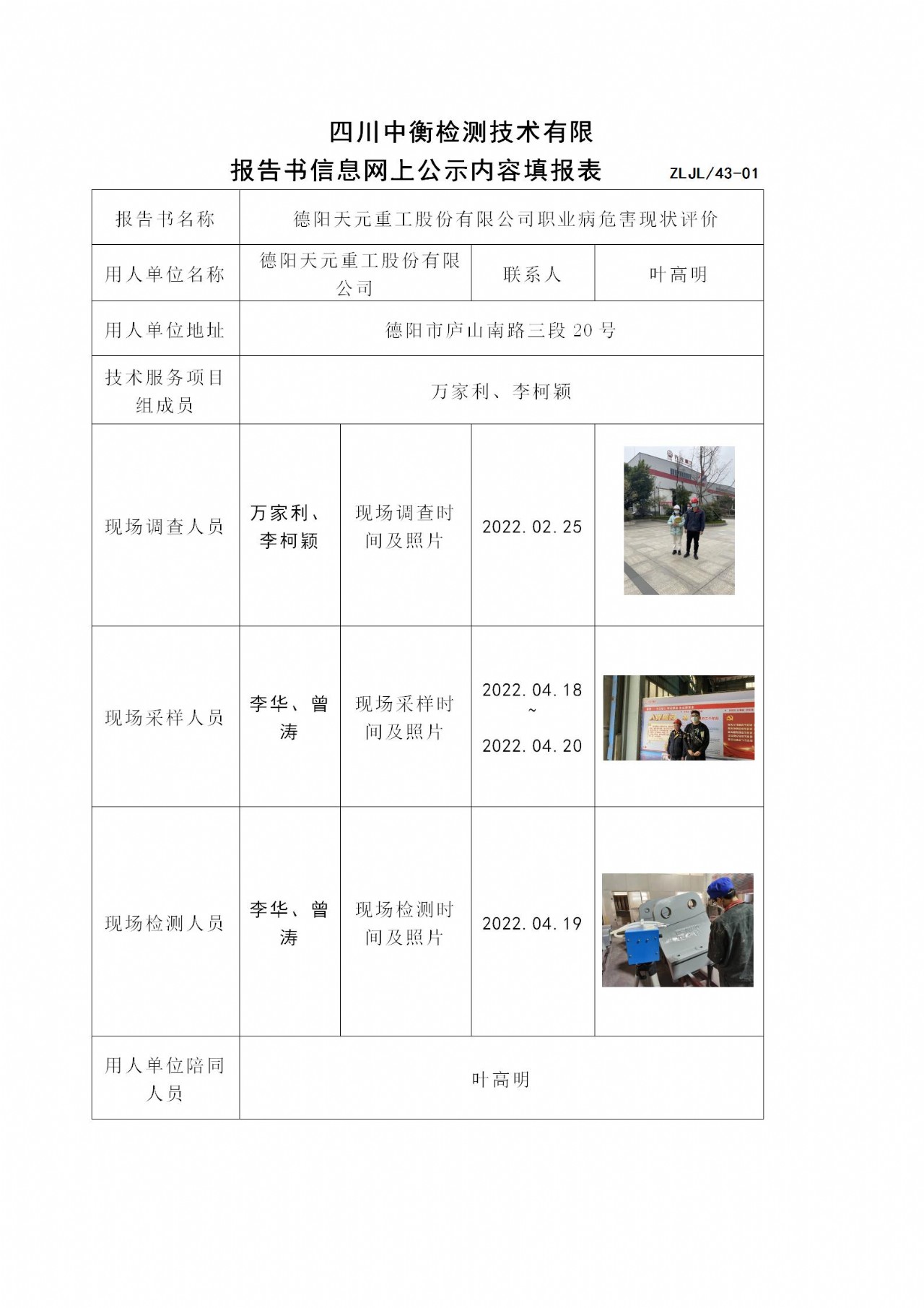 德阳天元重工股份有限公司职业病危害现状评价