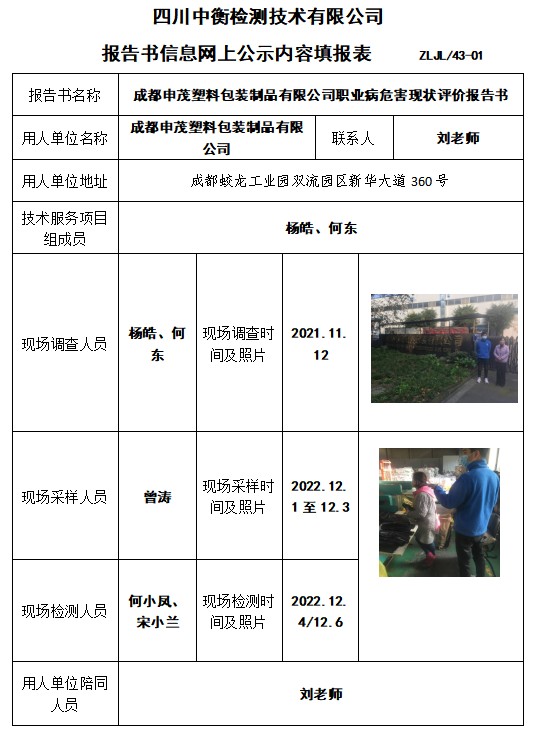 成都申茂塑料包装制品有限公司职业病危害现状评价