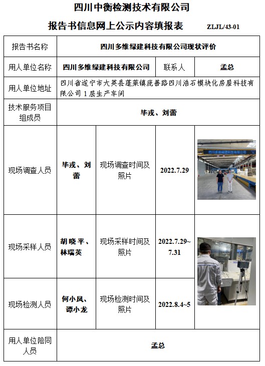 四川多维绿建科技有限公司控制效果评价
