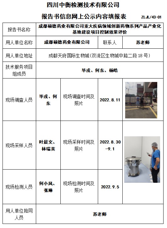 成都硕德药业有限公司重大疾病领域创新药物系列产品产业化基地建设项目控制效果评价