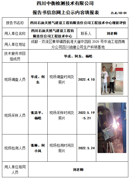 四川石油天然气建设工程有限责任公司工程技术中心现状评价