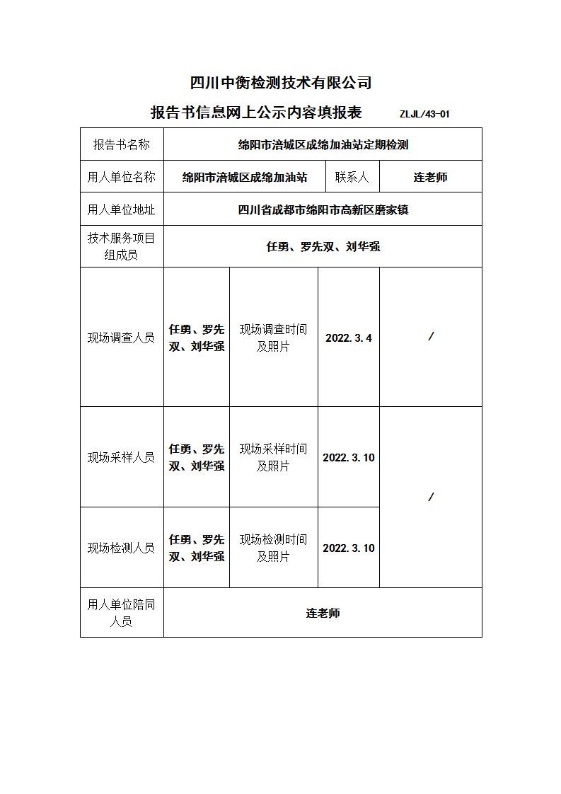 绵阳市涪城区成绵加油站职业病危害定期检测
