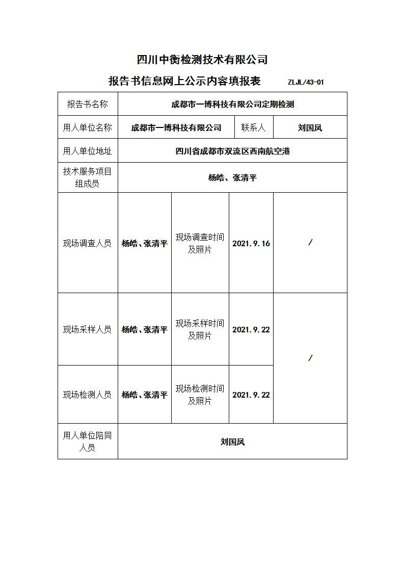 成都市一博科技有限公司职业病危害定期检测