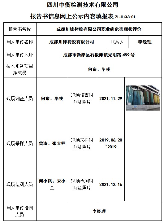 成都川锋栲胶有限公司职业病危害现状评价