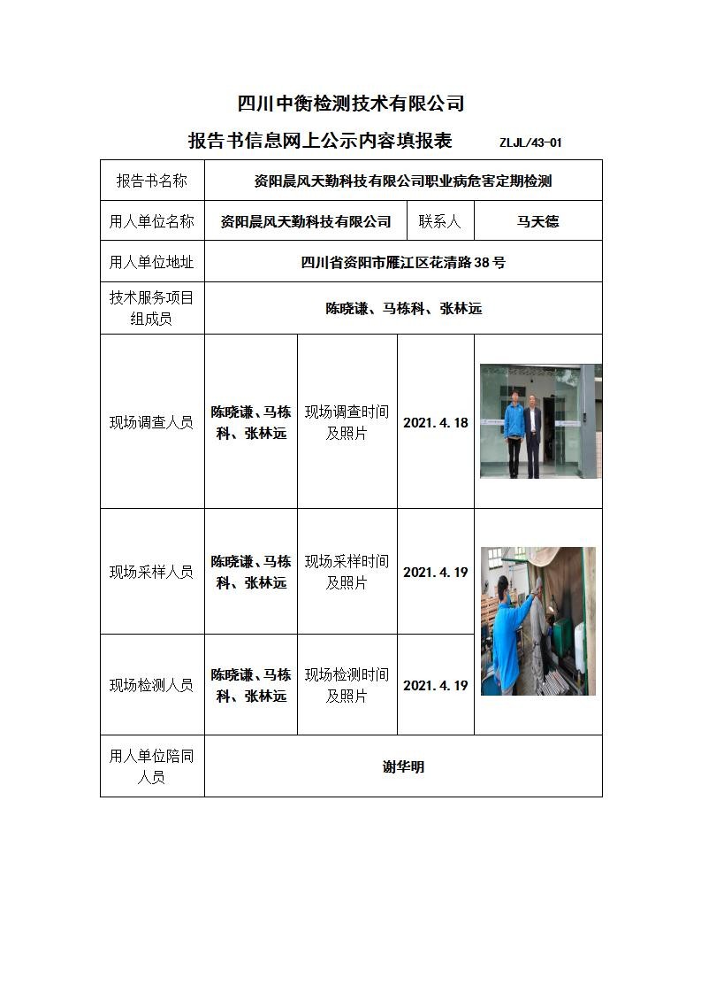 资阳晨风天勤科技有限公司职业病危害定期检测