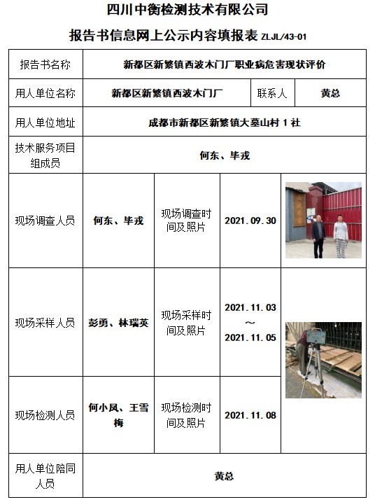 新都区新繁镇西波木门厂职业病危害现状评价
