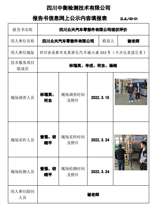 四川众兴汽车零部件有限公司现状评价