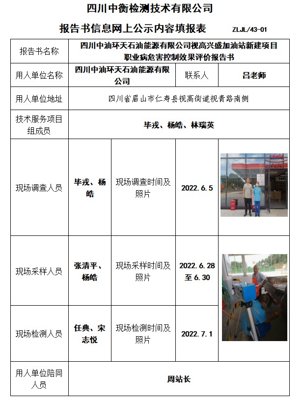 四川中油环天石油能源有限公司视高兴盛加油站新建项目 职业病危害控制效果评价