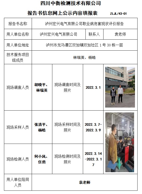 泸州宏兴电气有限公司职业病危害现状评价