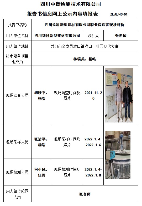 四川铁科新型建材有限公司职业病危害现状评价