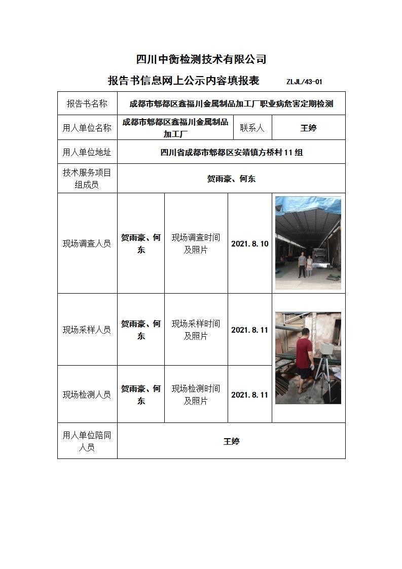 成都市郫都区鑫福川金属制品加工厂职业病危害定期检测