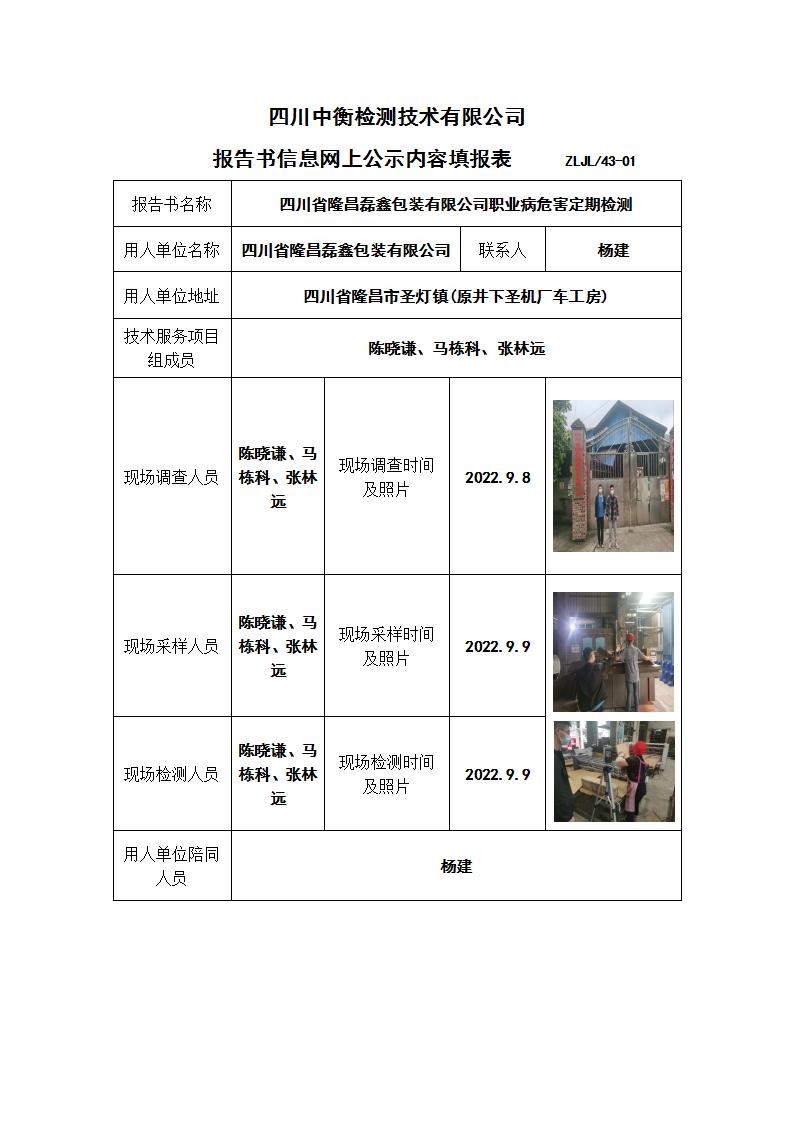 四川省隆昌磊鑫包装有限公司职业病危害定期检测