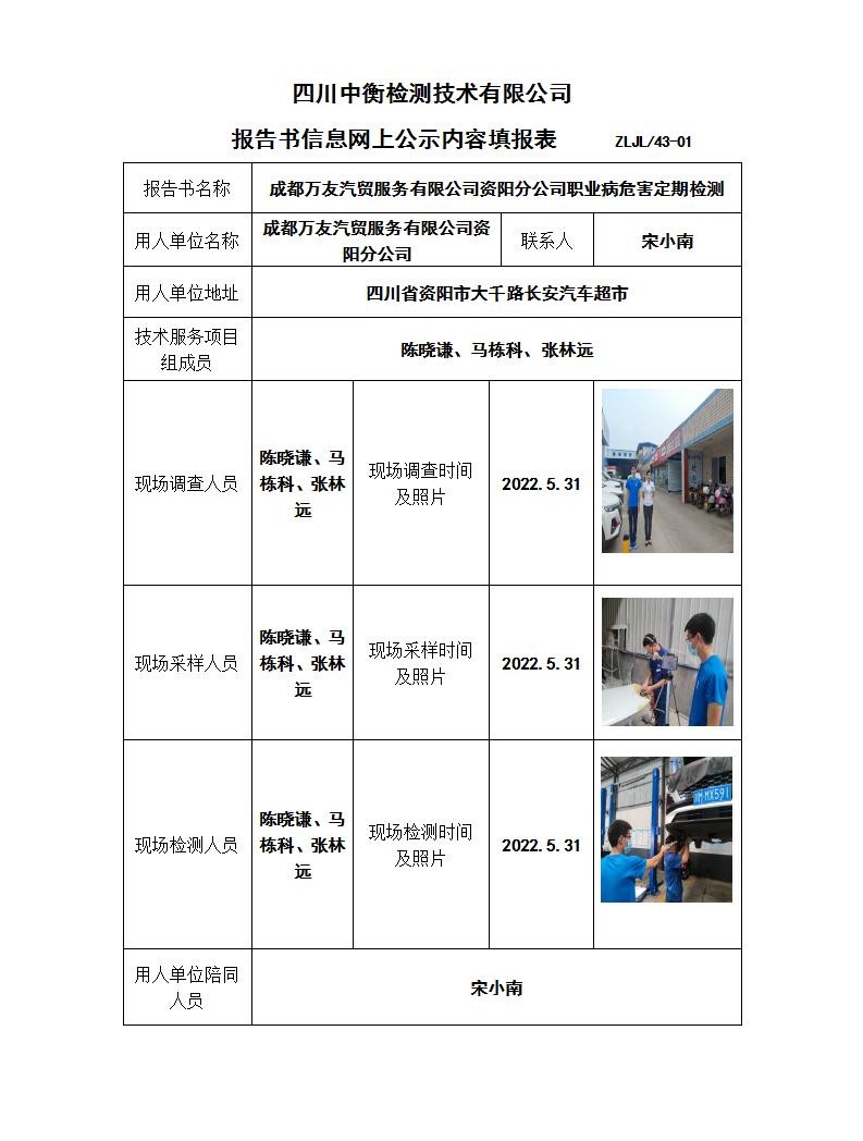 成都万友汽贸服务有限公司资阳分公司职业病危害定期检测