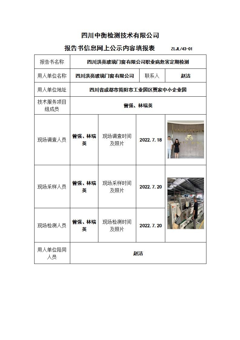 四川洪亮玻璃门窗有限公司职业病危害定期检测