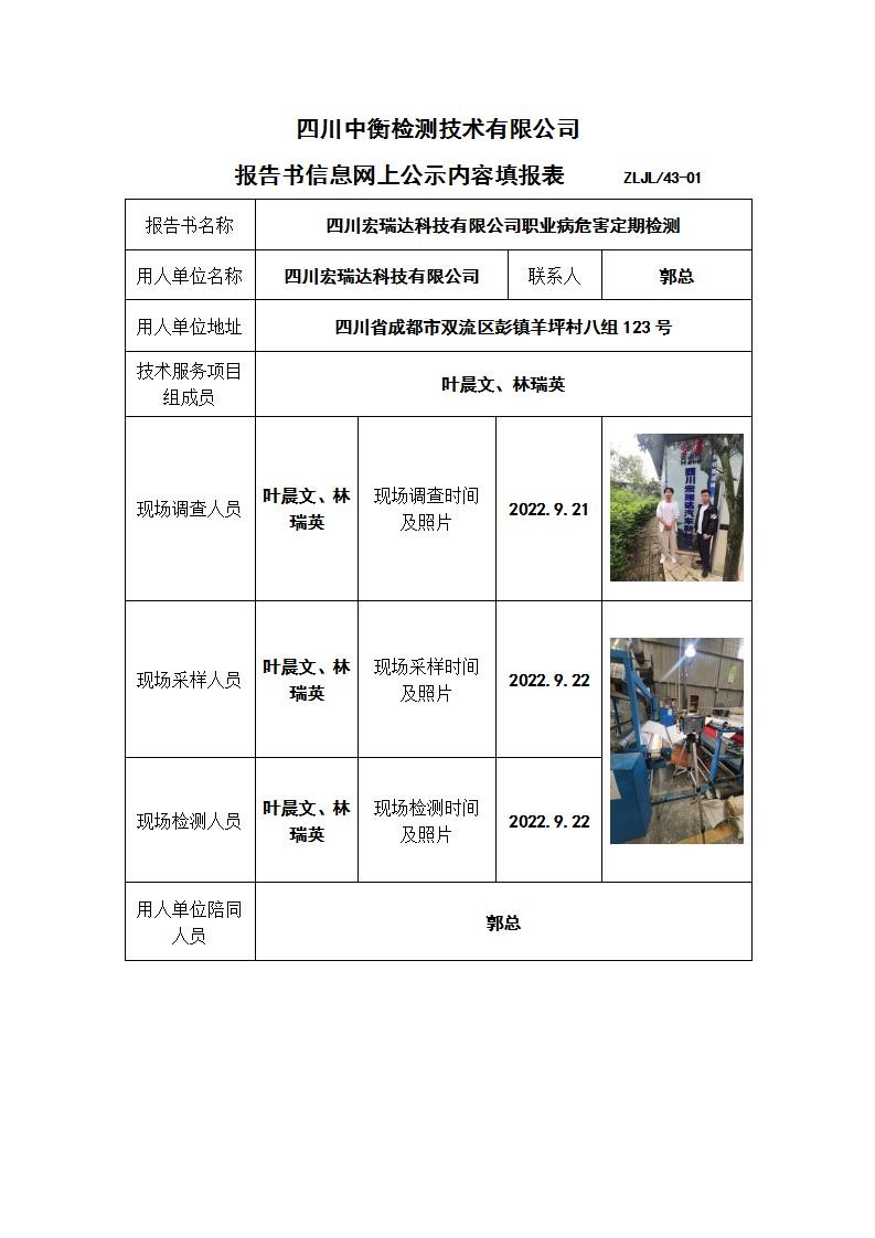 四川宏瑞达科技有限公司职业病危害定期检测