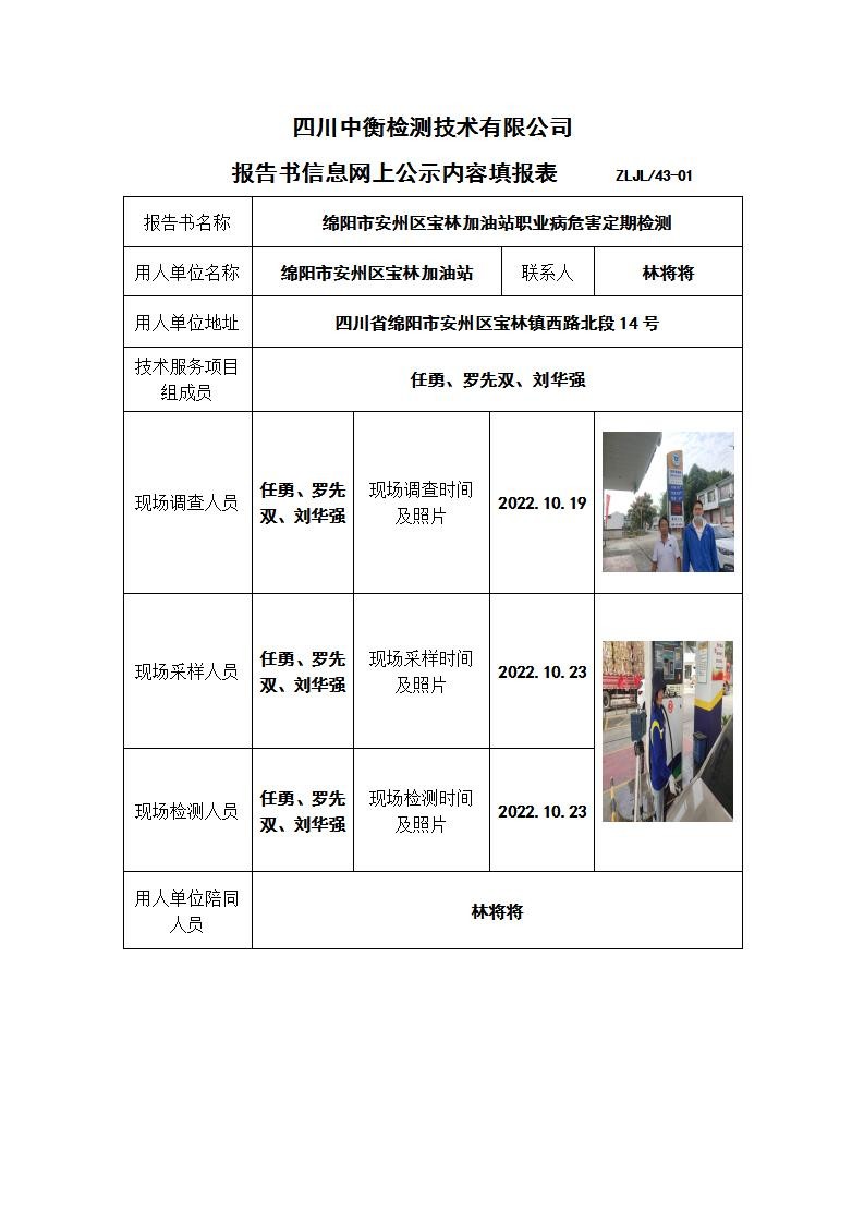 绵阳市安州区宝林加油站职业病危害定期检测